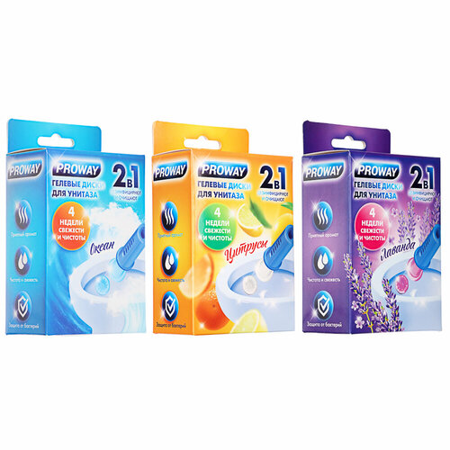 Диски гелевые Proway для унитаза, лаванда, океан, цитрус, шприц, 1 штука, в ассортименте, 36 мл
