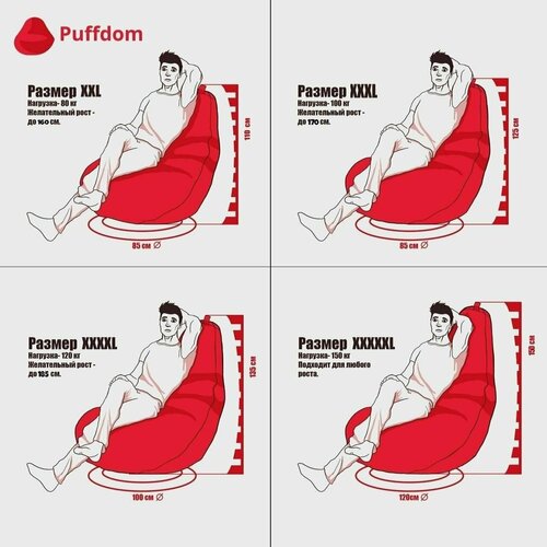 Кресло-мешок Груша XXXL-Комфорт, велюр (Puffdom пуф, кресло, бескаркасная мягкая мебель)