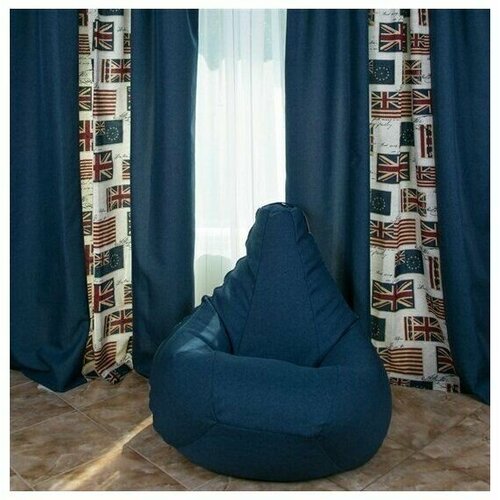 Кресло-мешок Груша XXL-Комфорт, 200л, темно-синий велюр (Puffdom пуф, кресло, бескаркасная мягкая мебель)