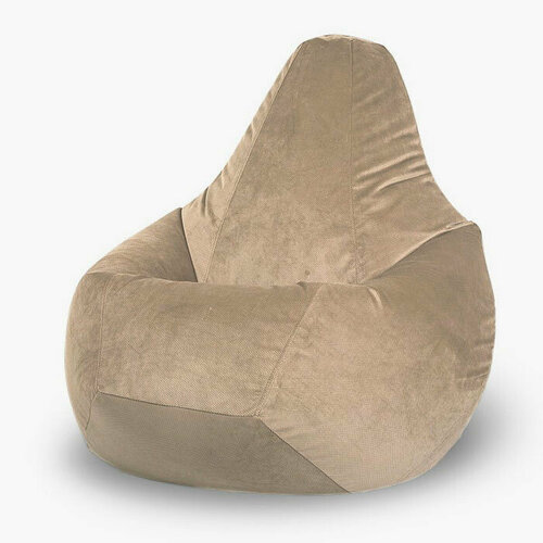 Кресло-мешок Груша XXXXL-Комфорт, бежевый велюр (Puffdom пуф, кресло, бескаркасная мягкая мебель)