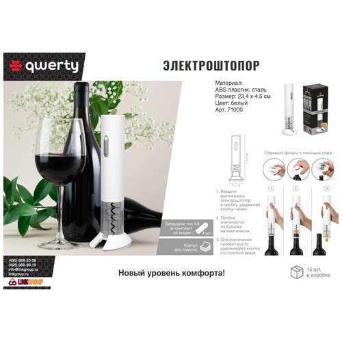 Электромельница QWERTY перец/соль, цвет белый, 5х23 см, на батарейках 4хАА