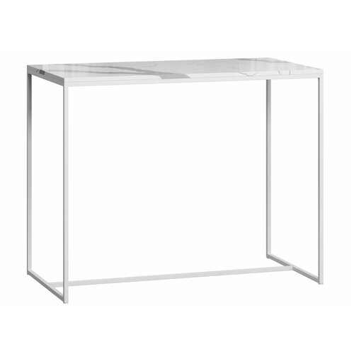 Стол барный Лофт из камня Годмар Мрамор Сноу с белым основанием, 105x130x60