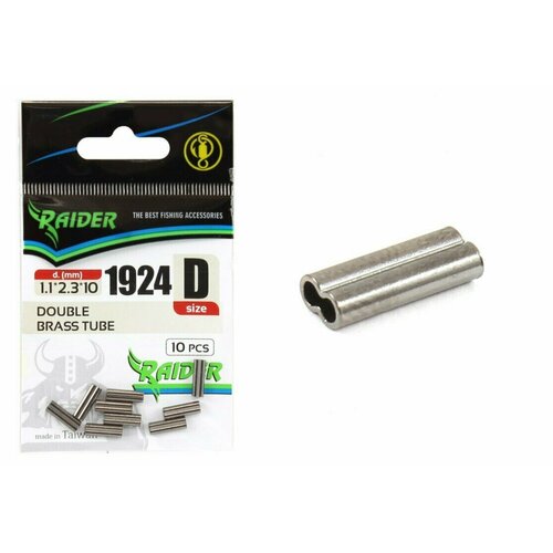 Трубочки обжимные двойные RAIDER DOUBLE BRASS TUBE (уп.10шт) "D" (внутр. диам.1.1*2.3*10мм), для рыбалки