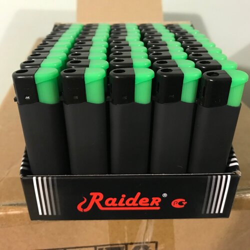 Зажигалки "Raider", 25 штук, прорезиненные, черные, увеличенный размер