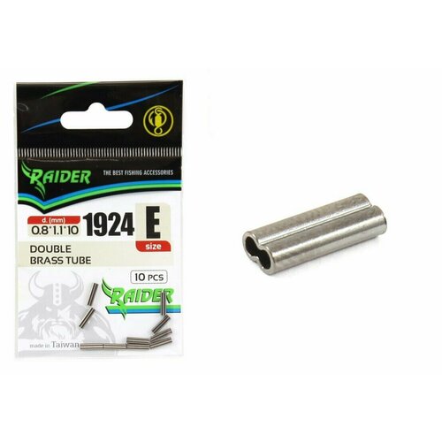 Трубочки обжимные двойные RAIDER DOUBLE BRASS TUBE (уп.10шт) "E" (внутр. диам.0.8*1.1*10мм), для рыбалки