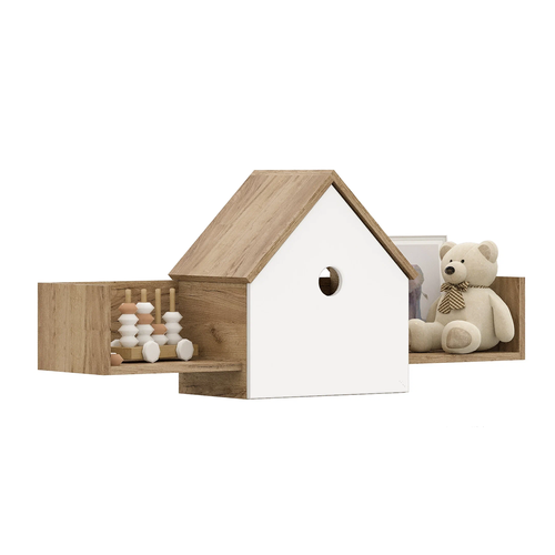 Полка декоративная детская домик RAUS "Колибри" (Дуб крафт золотой/ Белый софт)