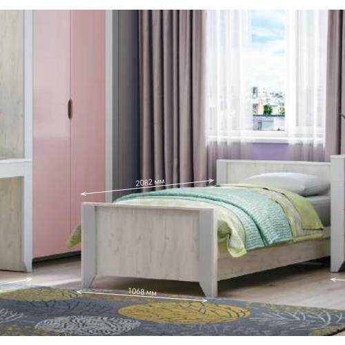 Кровать односпальная 90х200 Буква RAUS Дуб крафт