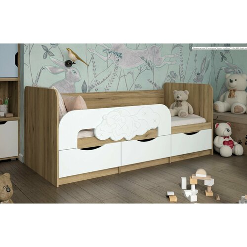 Кровать детская RAUS 3D эксклюзив "Мишка на облаке" 1,86м Дуб крафт золотой/Белый софт