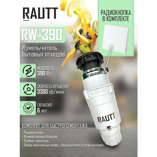 Измельчитель бытовых отходов RAUTT с пультом ДУ, диспоузер RW-390 с радиокнопкой, электрический встраиваемый в раковину, 390 Вт, 1500 мл, измельчитель пищевых отходов кухонный для раковины