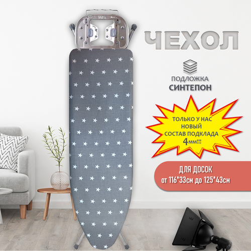 Чехол для гладильной доски с подкладкой синтепон, звезды на темно-сером