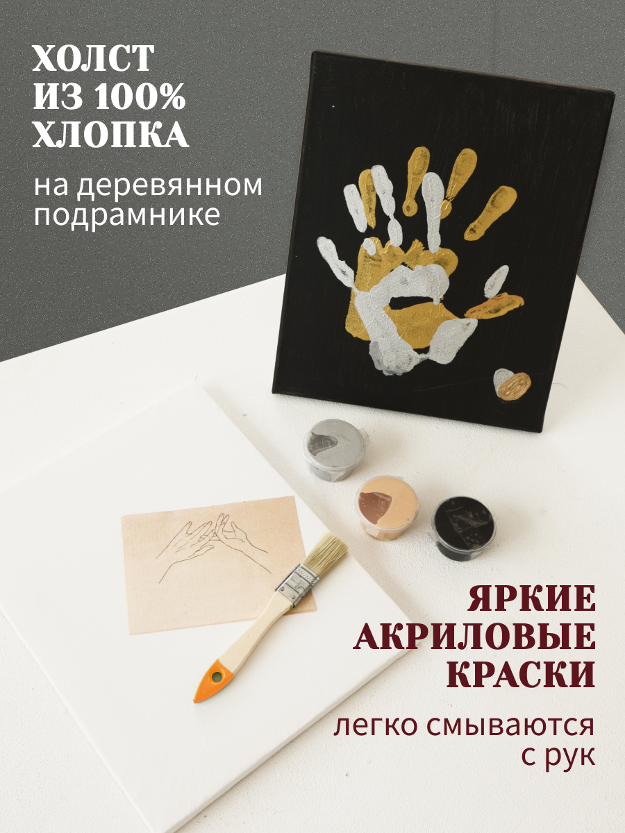 Набор для создания картины Resbery Отпечатки рук влюбленных холст на подрамнике с краской