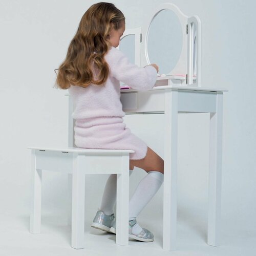 Туалетный столик для девочки Roba (комплект мебели: трюмо детское с зеркалом и табуретом) белый