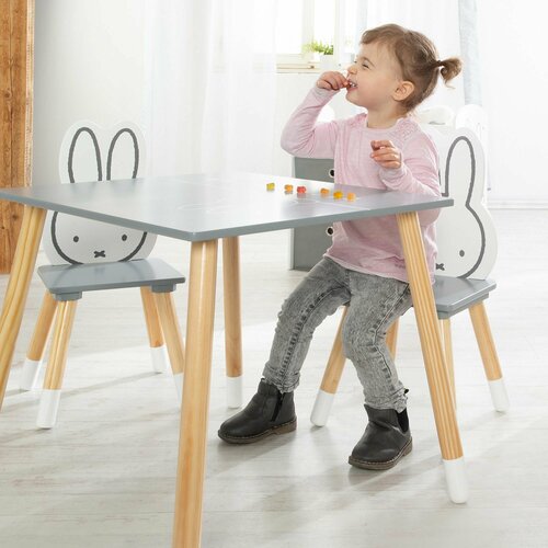 Детский стол и стул Roba Комплект детской деревянной мебели Miffy: стол + 2 стульчика, серый/натуральный
