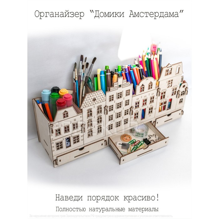 Органайзер для канцелярских принадлежностей Robokub "Домики Амстердама", деревянный, 40см 600011444480