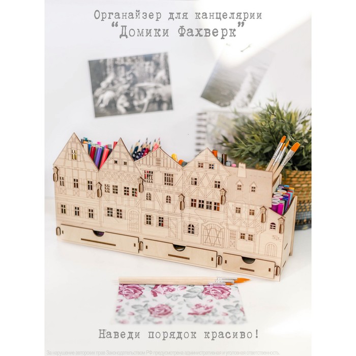 Органайзер для канцелярии Robokub "Домики Фахверк", деревянный