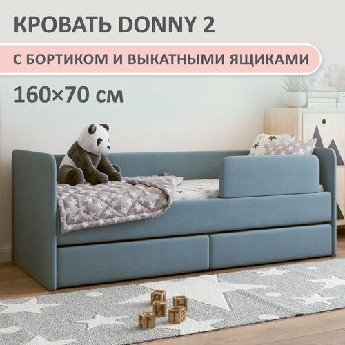 Детская кровать Romack Donny 2 70x160 с бортиком и выдвижными ящиками цвет: синий