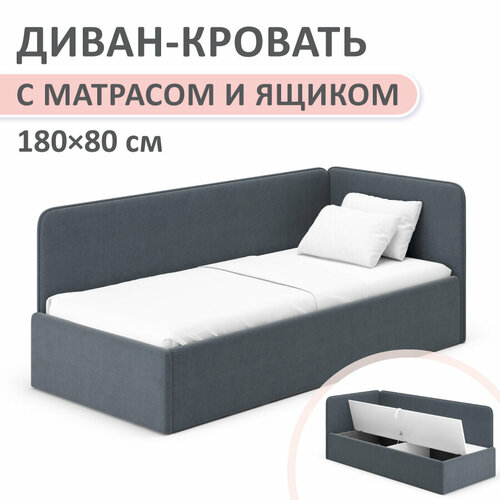Кровать-диван Rafael 180*80 серый велюр с ящиком для белья +большая боковина