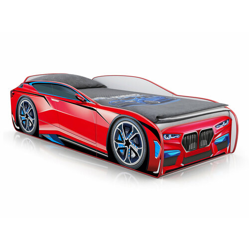 Кровать-машина "Romeo" объемная голубая с матрасом и подсветкой фар в комплекте, спальное место 170х70 см
