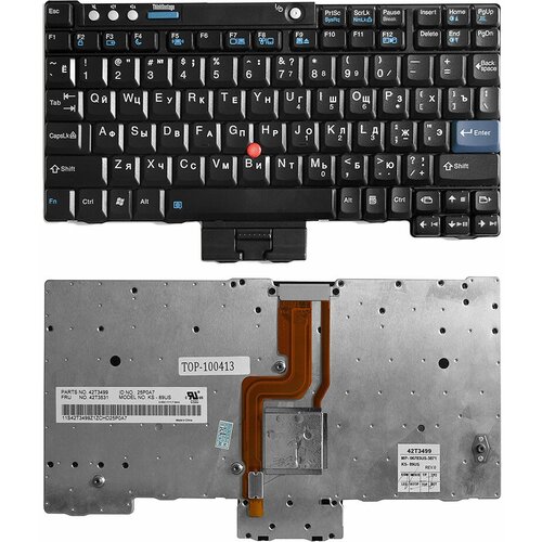 Клавиатура для ноутбука Lenovo ThinkPad X60, X60s, X61, X61s Series. Плоский Enter. Черная, без рамки. PN: 42T3038.