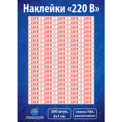 Набор наклеек "220В" для розеток, 30х10 мм, 200 шт.