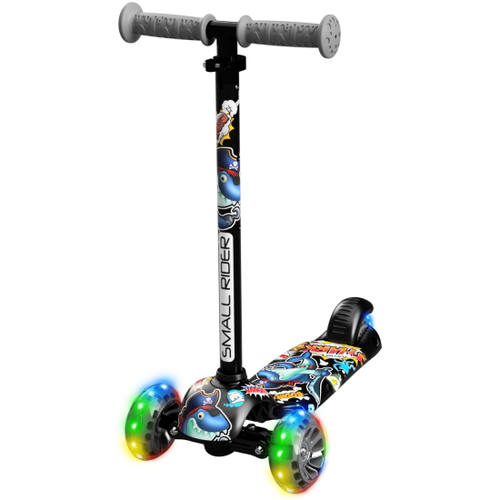 Детский трехколесный самокат со светящими колесами Small Rider Turbo 2 Cartoons (черный, акула), TurboBshark
