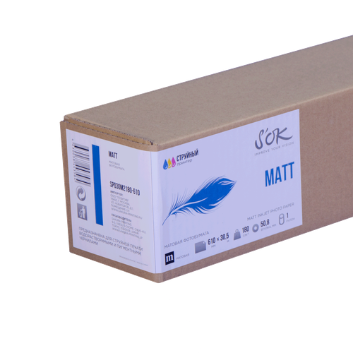 Бумага S'OK матовая с покрытием для широкоформатной печати 24' A1 610х30,5м втулка 50,8 мм 180