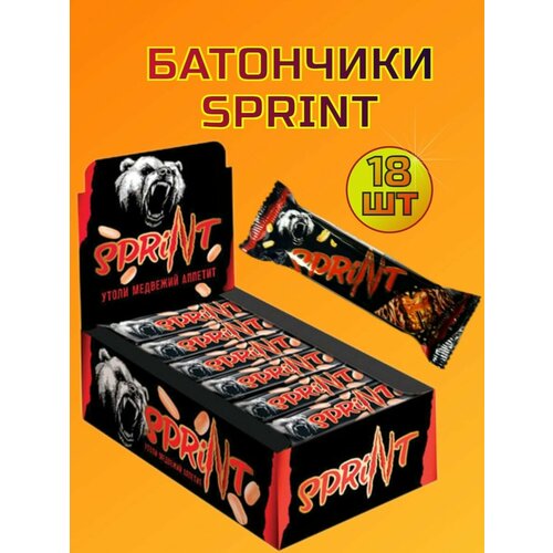 Батончик Sprint с карамелью, нугой и орехами, коробка, 50 г, 18 шт.
