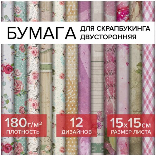Бумага для скрапбукинга 15х15 см Шебби-шик, двусторонняя, 12 листов, 12 дизайнов, 180 г/м2, остров сокровищ, 662761