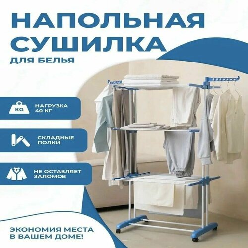 Сушилка напольная для белья складная / Вешалка напольная на колесиках / Качество ТОП / Белая