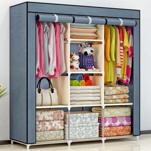 Шкаф тканевый для одежды складной / Каркасный тканевый быстросборный / Герметичный / Серый