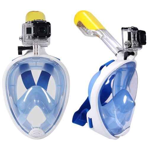 Подводная маска для Взрослых и Детей / Полнолицевая с креплением для экшн-камеры / Синяя L/XL