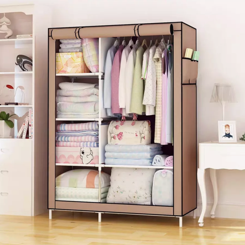 Шкаф тканевый для одежды складной / Каркасный тканевый быстросборный / Герметичный / Коричневый