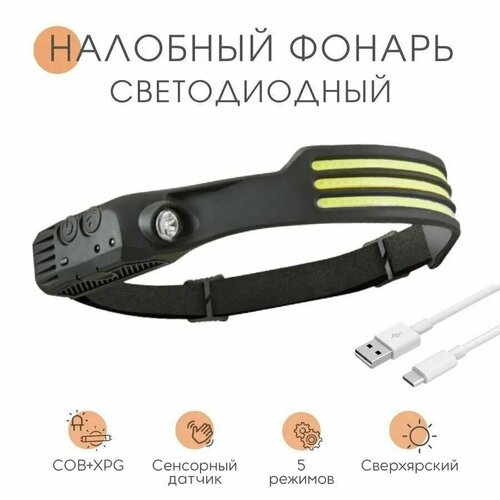 Мощный светодиодный фонарь налобный с USB зарядкой и с аккумуляторными батареями, влагозащита, включение по взмаху, гибкий для рыбалки и охоты