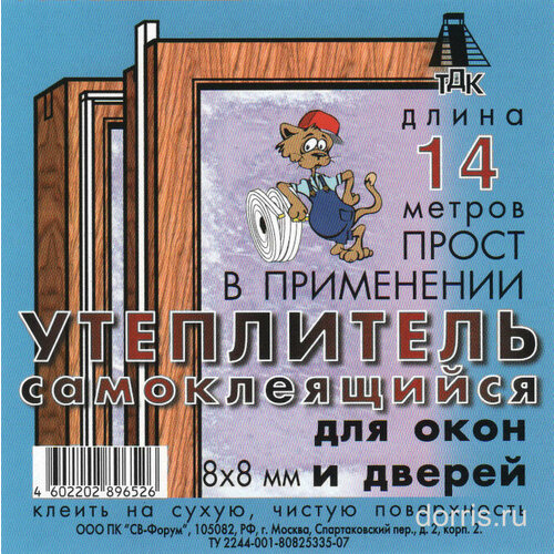 Самоклеящийся утеплитель 8х8 мм, 14 м
