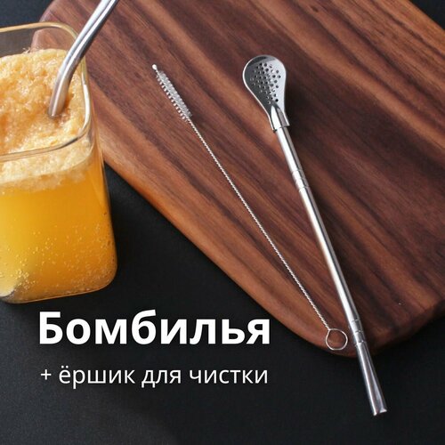 Бомбилья для мате - ложка трубочка для мате с фильтром + мини ёршик для чистки