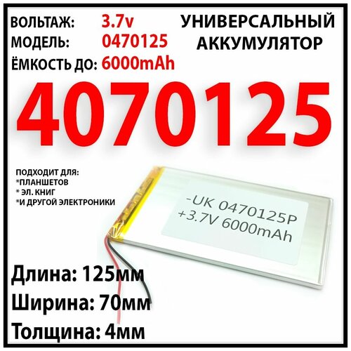 Аккумулятор для планшета универсальный 3.7v 6000mAh 4x70x125 / литий-полимерный /