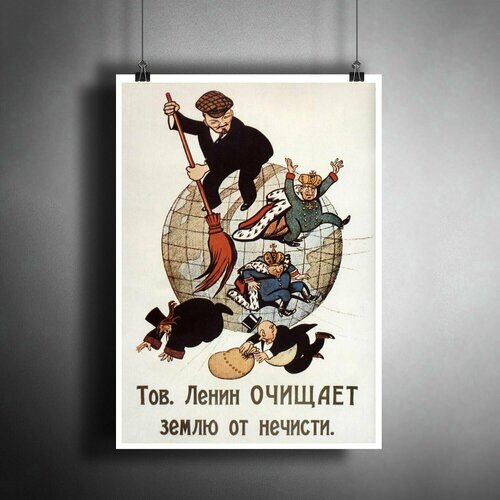 Постер плакат для интерьера "Советский плакат: Тов. Ленин очищает землю от нечисти" / Декор дома, офиса, комнаты, квартиры, детской A3 (297 x 420 мм)