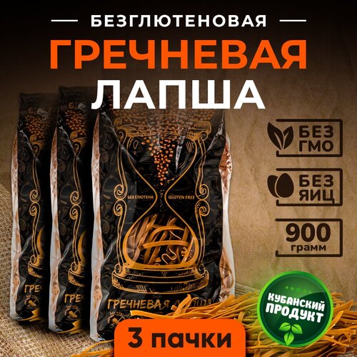 Лапша гречневая без глютена / без яиц 900 г (3 пачки)