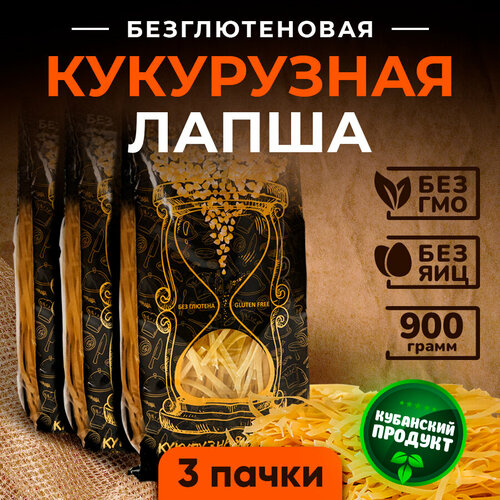 Лапша кукурузная без глютена / без яиц 900 г (3 пачки)