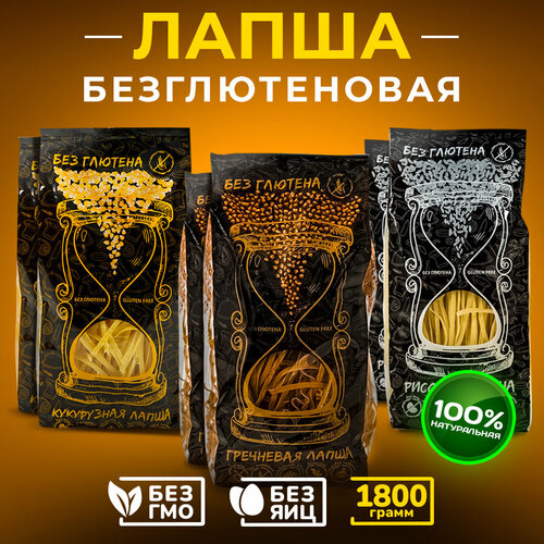 Набор лапши без глютена и яиц Рисовая, Гречневая, Кукурузная 1800 г (6 пачек)