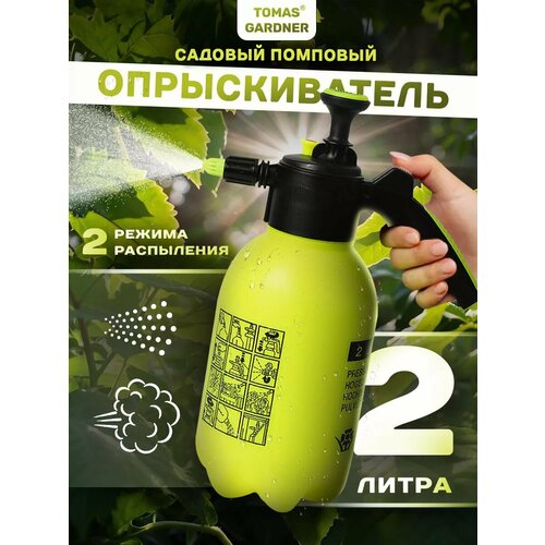 Опрыскиватель садовый Tomas Gardner помповый, объемом 2 литра, ручной без аккумулятора, регулировка распыления, пригоден для химикатов, желтый