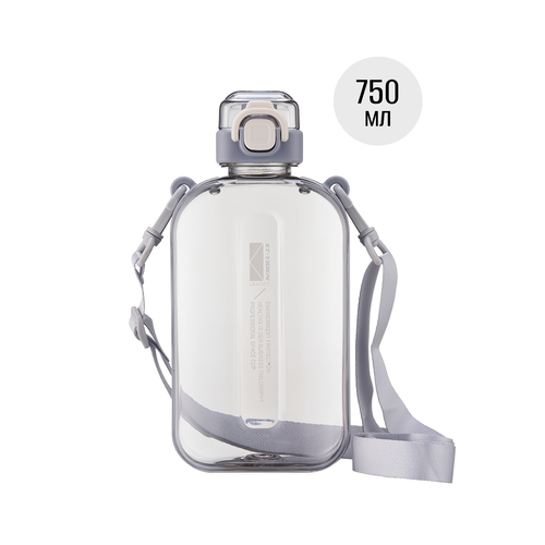 Спортивная бутылка для воды с трубочкой , на ремне 750 мл . Бутылочка под воду . Фляжка детская в школу. Бутыль плоская .