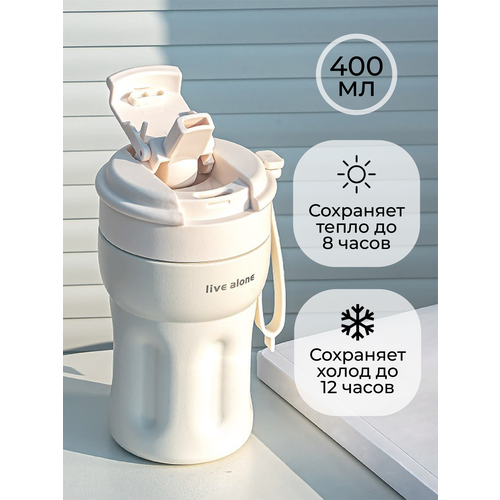 Термокружка автомобильная для кофе и чая с трубочкой и поильником 400 мл. Термостакан в машину.