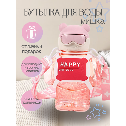 Спортивная бутылка для воды розовая , бутыль на ремне в чехле, шейкер 1 литр, бутылочка большая под воду с чехлом , детская бутылка в школу