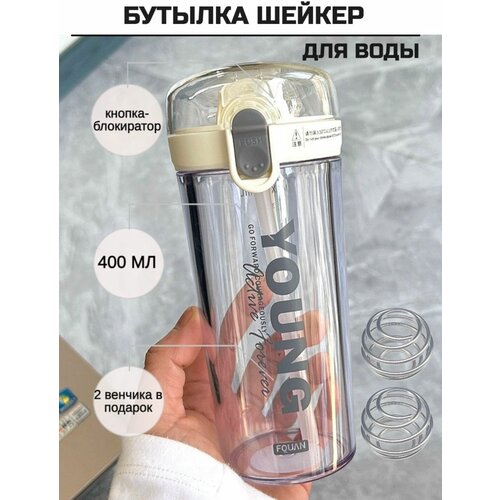 Шейкер для протеина и спортивного питания 400 мл. Спортивная бутылка для воды с поильником , с трубочкой , с шариком .