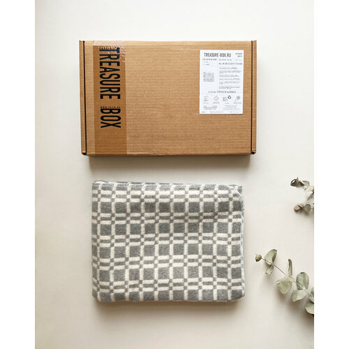 Комплект из 2 шт, одеяло байковое детское, плед для новорожденных, 90 х 112 см, в подарочной коробке крафт, ID: Клетка комбо_90/112_туман