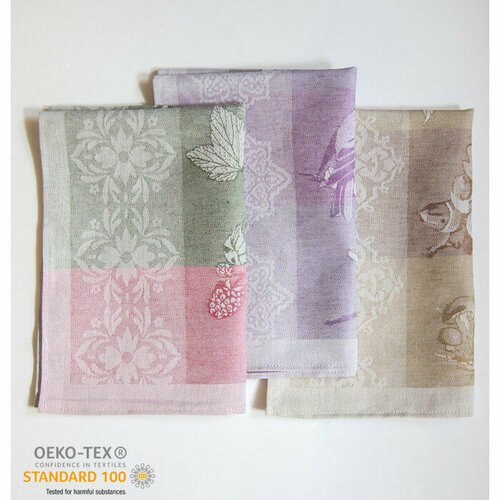 Льняные кухонные полотенца жаккард 3 шт 49 х 70 Сертификат OEKO-TEX ID: 468_Круговорот