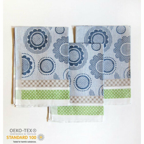 Набор кухонных полотенец премиум, хлопок + лен, жаккард, 3 шт, Сертификат OEKO-TEX ID: 337_Осло (45х65 см, Зелёный)