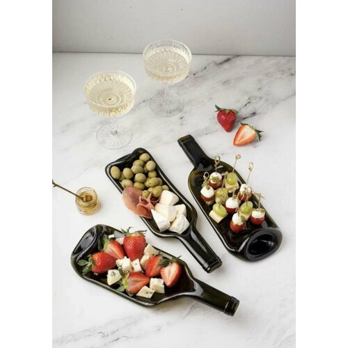 Набор тарелок из винных бутылок 3 шт, тарелка-бутылка, тарелка декоративная, менажница, стекло