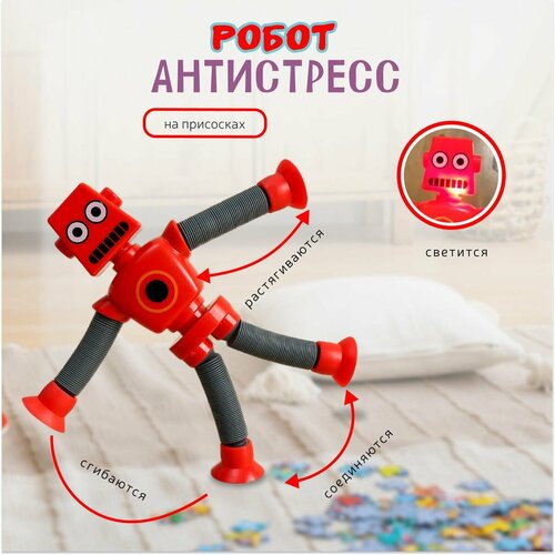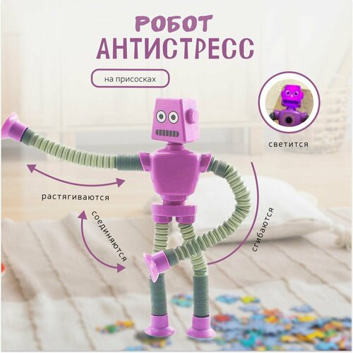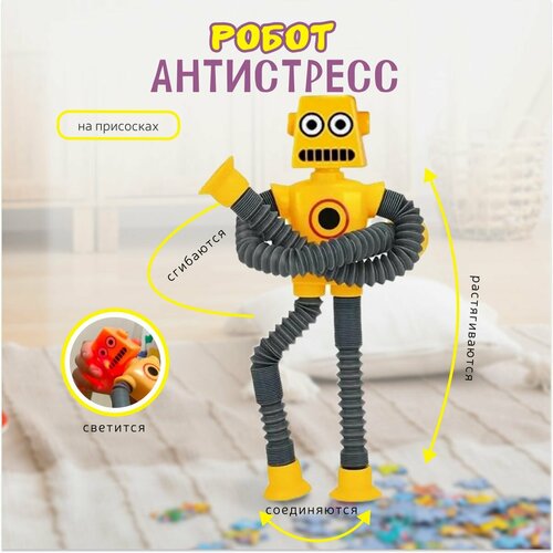 Игрушка антистресс тянучка робот поп туб светящийся на присоске